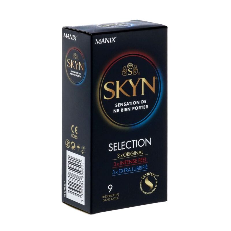 SKYN®, la matière Presque imperceptible. Selection est un pack pour découvrir le meilleur des préservatifs Skyn : 3 préservatifs SKYN® ORIGINAL / 3 préservatifs SKYN® EXTRA LUBRIFIE / 3 préservatifs SKYN® INTENSE FEEL.